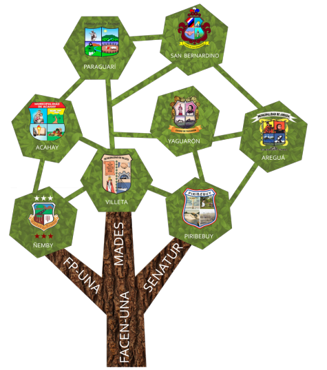 In accordance with UNESCO's guidelines, the first Geopark Management Committee (CGG) was formed, comprising the Faculty of Exact and Natural Sciences of the National University of Asunción (FACEN-UNA), SENATUR, MADES, the Government of the Central Department (GDC), and the Organized Civil Society of the Municipality of Areguá and San Bernardino (Fig. 3). The committee's responsibility is to develop the first national geopark called 'Geoparque Ãandeyvytykuera' (Our Hills in the Guarani language) to become part of the UGGp (López & Salinas 2022). The CGG is tasked with identifying geological sites in the Eastern Region of Paraguay within the Central, Cordillera, and Paraguarà departments. Numerous geological sites have been located whose geological formations align with the regulations recommended by UNESCO.