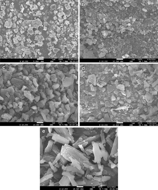 All of the experiments were carried out at room temperature (25 ± 1 °C) using circulating water bath. The water displacement method was used to measure hydrogen generation using two 2,000-ml cylinder meters (reading data error ±20 ml) because of the rapid speed of the hydrogen generation. After the reaction was completed, the product powders were characterized with an analytical PW3040/60 X′Pert Pro X-ray diffractometer using Cu Kα radiation and an Ni filter over the angular range of 10°–80°(2 θ ) at a scanning rate of 4° min −1 and a step size of 0.01°. Field-emission scanning electron microscopy (FESEM, JEOL JSM 7600F) was employed to characterize the morphology of the powders.
