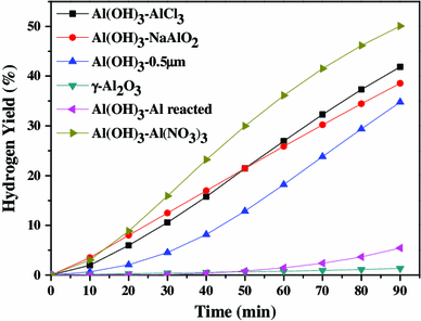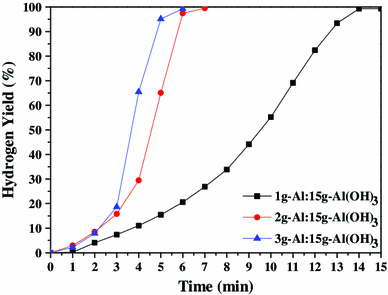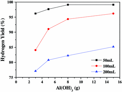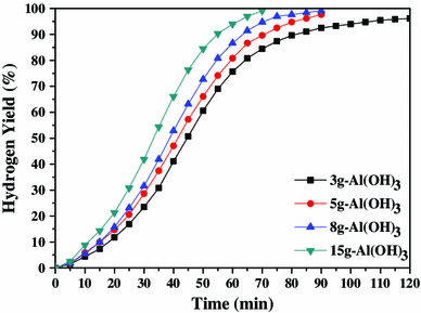 O Effect of increasing amount of Al on the hydrogen yield from 15:50 for Al(OH)