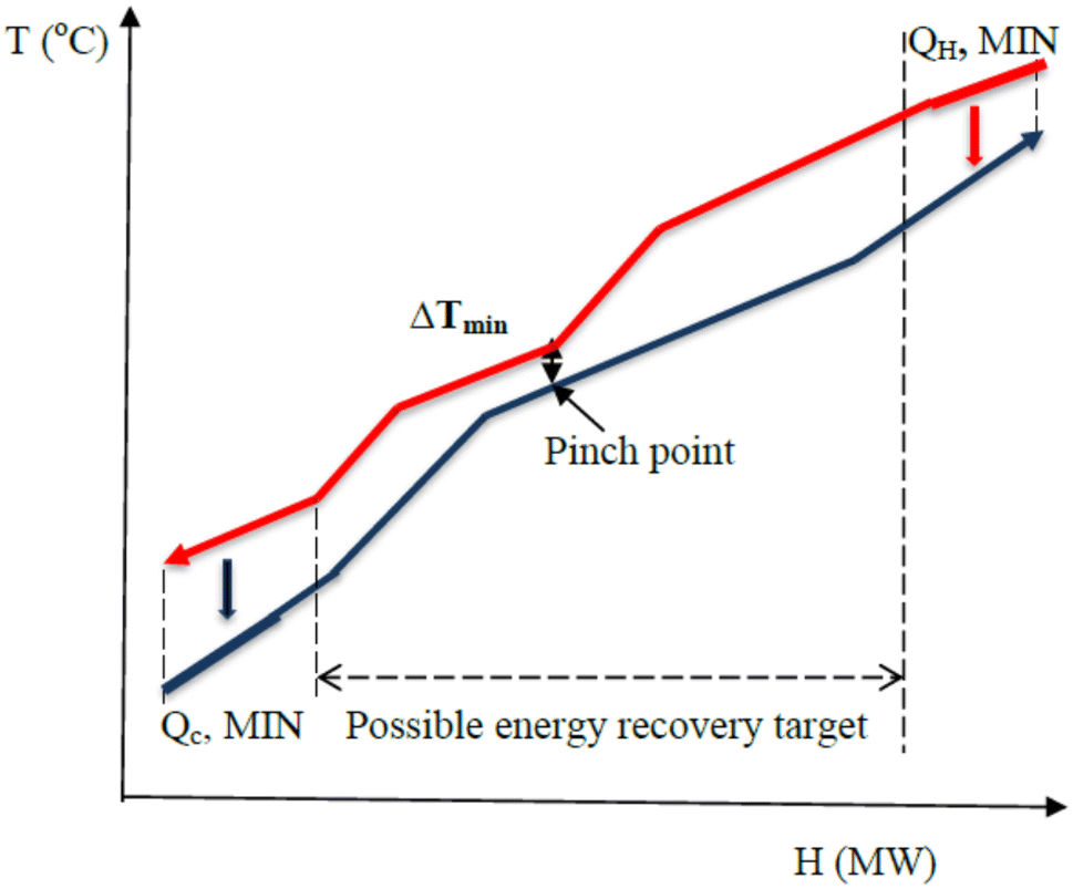 Recent studies in sustainable environmental engineering have highlighted the need to improve the efficiency, material and energy-saving potential of most CO 2 capture methodologies [ 90 , 91 – 92 ]. The amount of CO 2 emitted from industrial processes need to be minimized using the CCS techniques with minimum energy expenditure and material usage. With the application of pinch analysis in CO 2 capture systems, appropriate loads on various process streams can be identified and, as such, energy consumption and material usage during CO 2 capture can also be minimized [ 93 , 94 – 95 ]. In addition, pinch analysis can provide a target for the minimum energy consumption of the entire CO 2 capture process from the process data of a CO 2 capture operation. The energy-saving potential for the process is then obtained using composite curves. The minimum energy-saving requirements set by composite curves depend on the energy and material balance of the CO 2 capture process. Adjusting the energy and material balance of the capture system makes it possible to further reduce its energy requirement [ 95 ].