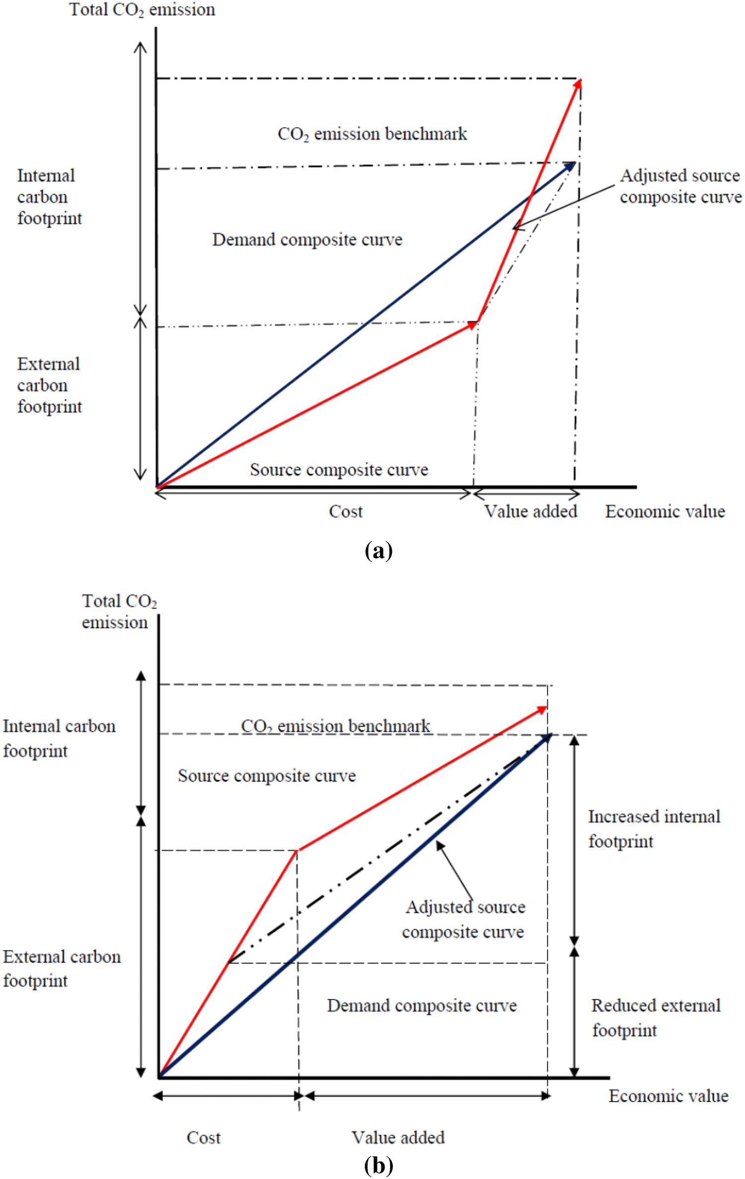 a is a composite curve showing reduction of the internal carbon footprint of a CO
