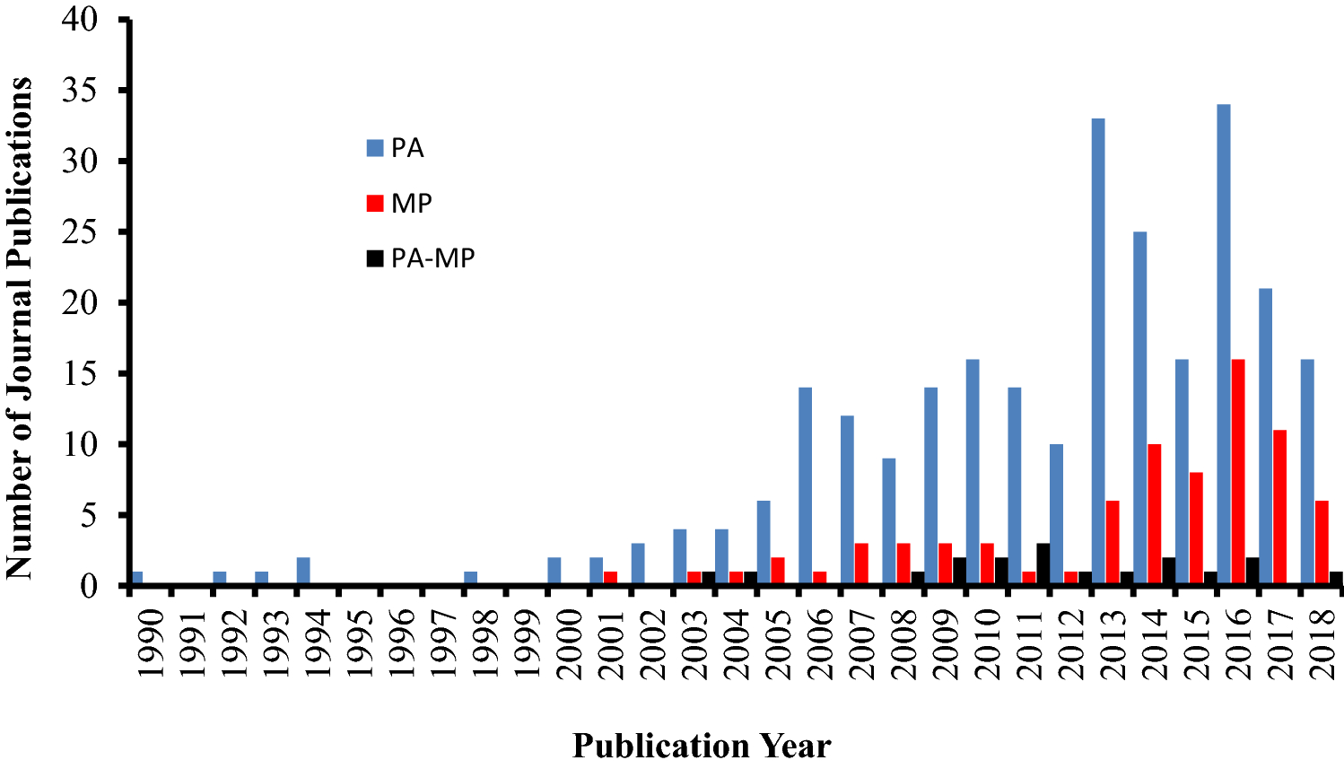 shows the distribution of journal publications using different synthesis techniques by year where PA stands for pinch analysis, MP is mathematical programming and PA–MP is a combined pinch analysis and mathematical programming approach. Figure