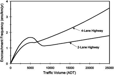 Encroachment frequency as function of traffic volumeFig. 3