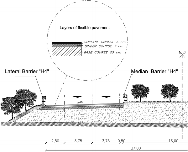 ], proper lateral and median guardrails, denominated “H4”, were installed (see Fig.
