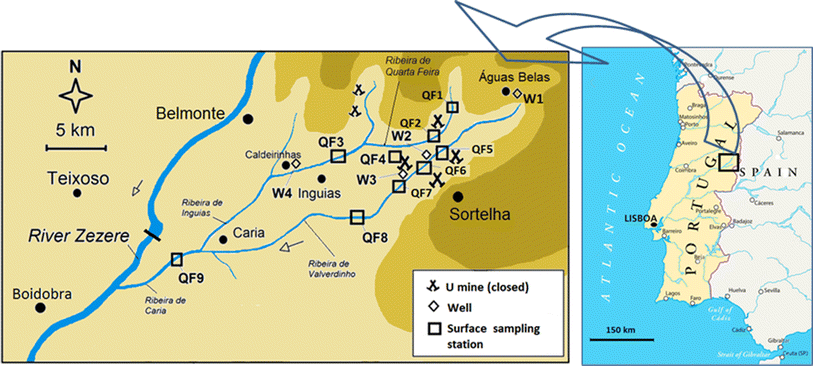 ). Therefore, there was a clear increase of radionuclide concentrations in surface waters of these tributaries to Zezere River caused by surface runoff and mine water drainage from old uranium mine sites located in their banks. This enhancement of radioactivity downstream to the mine sites was detected also in riverbed sediments (Table