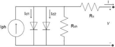 The model used in this study is based on a two-diode equivalent circuit of a solar cell, as shown in Fig.
