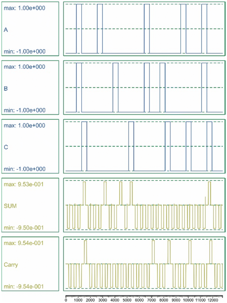 shows the result of the full adder circuit. Figure