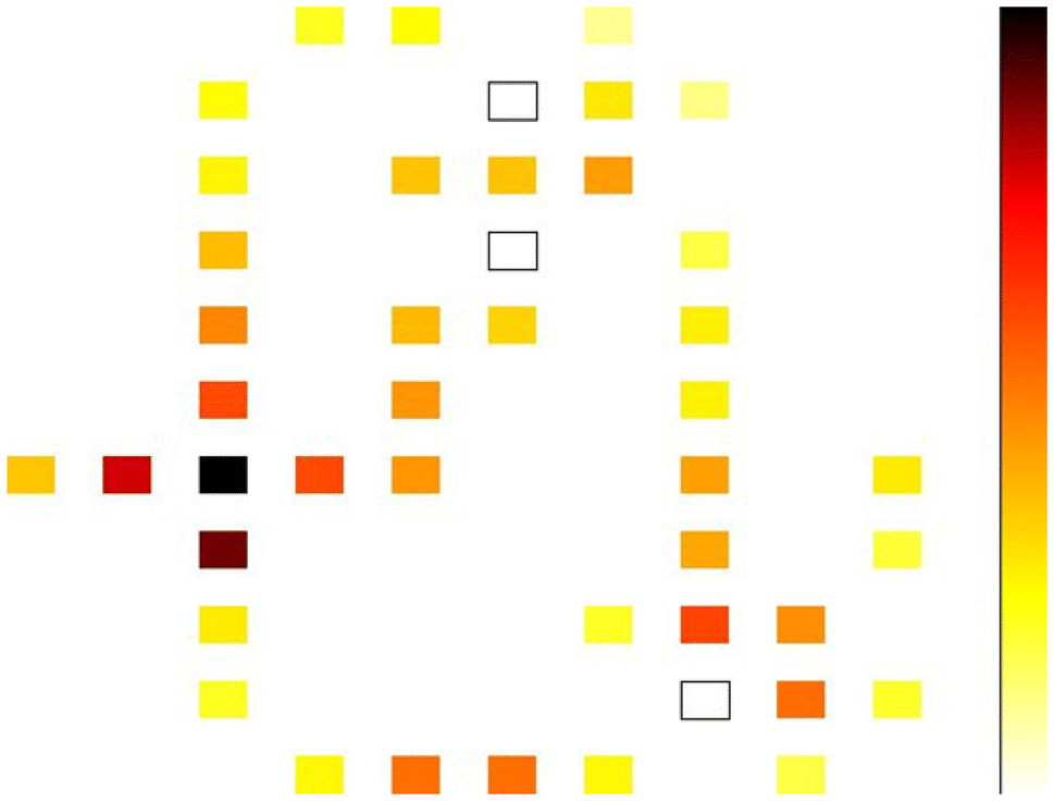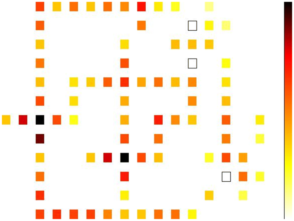 . In these figures, darker points show nodes with higher energy dissipation. In addition, amount of switching energy and leakage for different