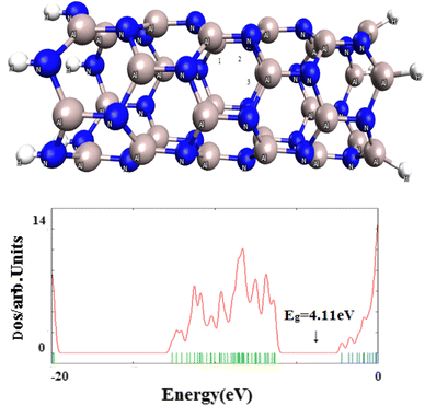 shows a partial structure of the optimized AlNNT and its DOS plot, indicating that it is considered as semiconductor with a HOMO/LUMO gap (