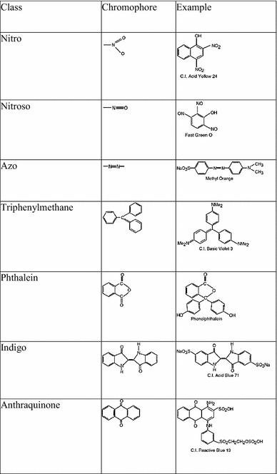 ] Class Substrate Method of application Chemical types Acid dyes Wool, nylon, silk, inks, leather and paper Generally from neutral to acidic bath Anthraquinone, xanthene, azo, nitro, and triphenylmethane Basic dyes Inks, paper, polyacrylonitrile, treated nylon, and polyester Applied from acidic dye baths Hemicyanine, azo, cyanine, diazahemicyanine, azine, diphenylmethane, xanthene, triarylmethane, acridine, anthraquinone and oxazine Direct dyes Nylon, rayon, paper, leather and cotton Applied from neutral or a little alkaline bath containing additional electrolyte Phthalocyanine, azo, oxazine, and stilbene Disperse dyes Polyamide, acrylic polyester, acetate, and plastics Fine aqueous dispersions often applied by high-temperature/pressure or lower temperature carrier methods; dye may be padded on cloth and thermo fixed Benzodifuranone, azo, anthraquinone, nitro, and styryl Reactive dyes Wool, cotton, silk and nylon Reactive site on dye reacts with functional group on fiber to bind dye covalently under influence of heat and pH Anthraquinone, formazan, phthalocyanine, azo, oxazine and basic Sulphur dyes Rayon and cotton Aromatic substrate vatted with sodium sulphide and reoxidized to insoluble sulphur-containing products on fiber Indeterminate structures Vat dyes Wool and cotton Water-insoluble dyes solubilized by dropping in sodium hydrogen sulphite, then exhausted on reoxidized and fiber Indigoids and anthraquinoneTable 1