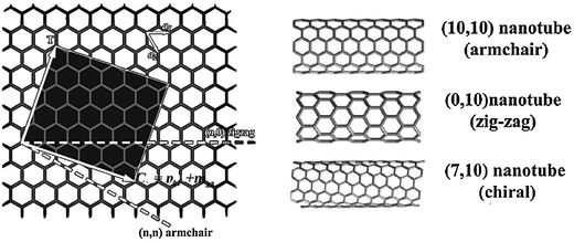 ) Molecular models of exhibited by SWNTs based on the chiralityFig. 1