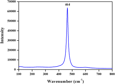 NPs was further elucidated by Micro Raman spectroscopy, and it exhibited a strong, intense band at 464 cm