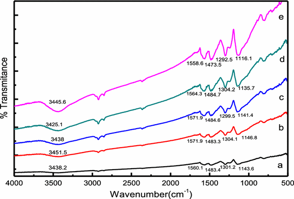 were found due to N–H stretching, quinoid structure, benzenoid structure and C–H and C–N stretching bands in benzene ring, respectively, as shown in Fig.