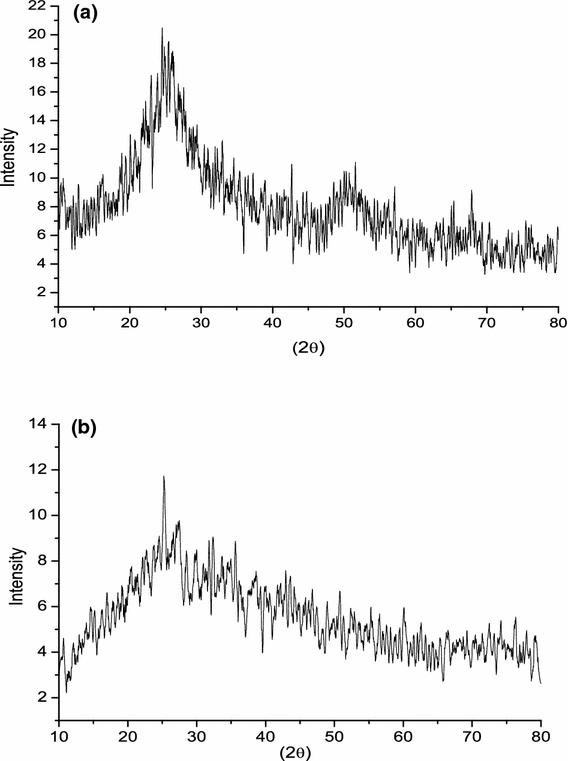 XRD pattern of PANI/CMGG nanocomposites shows that the crystalline structure in the nanocomposites has been decreased Fig. 3 b. This may also be because of the viscous behavior of the CMGG. As the concentration of the CMGG increases, it hinders the aniline radicals to form polyaniline chain.