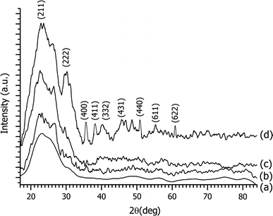 The PXRD patterns of the ITO-coated samples show a well defined (222) peak and to evidence other peaks, the pattern in the region 30°–60° was registered with a higher sensitivity. The films show the maximum intensity peak corresponding to the (222) orientation around 30.581° which is reported as favored direction of the grain growth observed for polycrystalline ITO films with higher oxygen content [