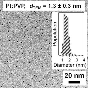 shows the representative TEM image of Pt:PVP clusters where particles were found to be comprised of spherical in shape. More than 300 clusters diameter was measured and plotted as histogram. An average diameter (