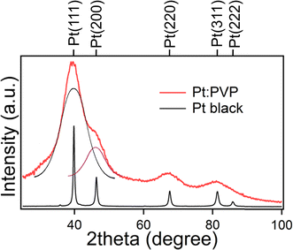 ) were calculated using the Scherrer equation to the Pt (111) diffraction peak, which was found to be 1.2 nm. The XRD diffraction patterns were simulated using TOPAS-4 program.