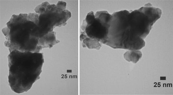 TEM images of images of iron-modified titanium dioxide SEM image of iron-modified titanium dioxideFig. 1