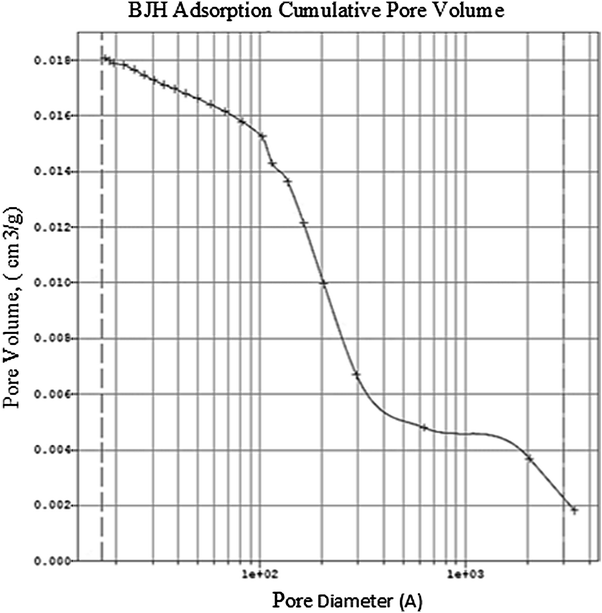 BET model, which was developed by Brunauer, Emmet and Teller is applied for measuring the surface of the catalyst. Based on the IUPAC classification, porous structures are categorized based on their pore sizes, micro pores (pores with diameters less than 2 nm), mesopores (pores with 2–50 nm diameter), and macropores (pores with diameters greater than 50 nm) [